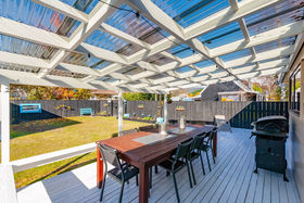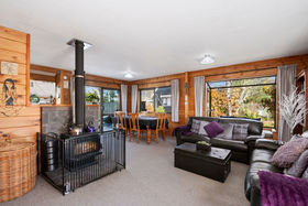 But I have not finished yet! Extending from the backdoor is a large deck for entertaining. Cleverly covered in tinted Clearlite it enables you to see Pihanga and the Tui's nesting in nearby trees, while enjoying a meal with family or friends. The section is fully fenced, with the grounds being manicured and exceptionally well presented. There is a single garage with storage space, a single carport and two woodsheds.